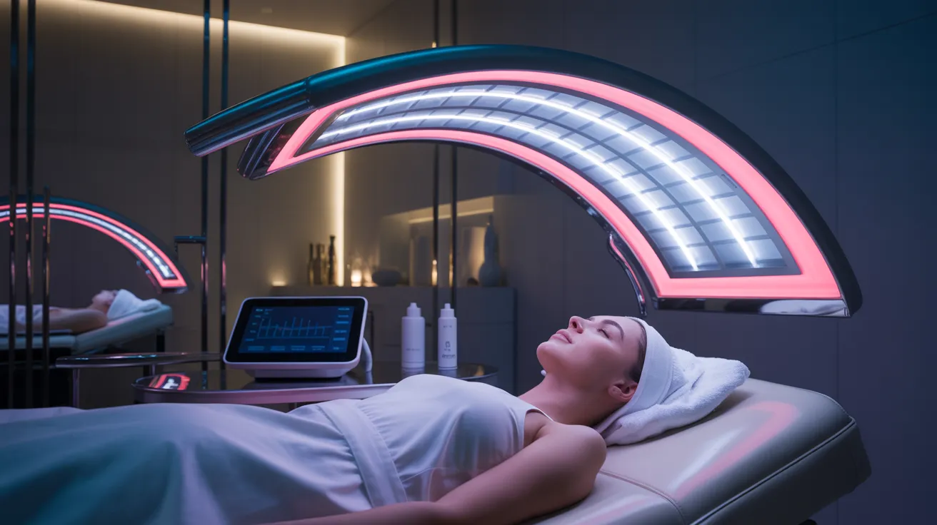 You'll lie back under carefully calibrated panels while your skincare specialist customizes intensity and duration for your skin type, Fitzpatrick level, and current concerns. Sessions complement extractions and soothing serums to enhance outcomes and reduce post-treatment redness. Expect no downtime—just a steady improvement in blemishes and visible flushing over several visits. Regular appointments and UV-protective practices help you maintain calmer, clearer skin between appointments.